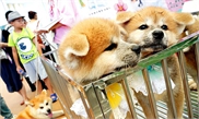 Akita dogs are seen at the Pet Fair Asia 2017 in Shanghai, east China's Shanghai Municipality, Aug. 24, 2017. The Pet Fair Asia 2017 kicked off at Shanghai New International Expo Center Thursday, with 950 exhibitors from around the world participating.
