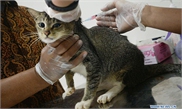 A cat is given an anti-rabies vaccine for free at an animal clinic in South Tangerang, Indonesia, on Dec. 20, 2017.