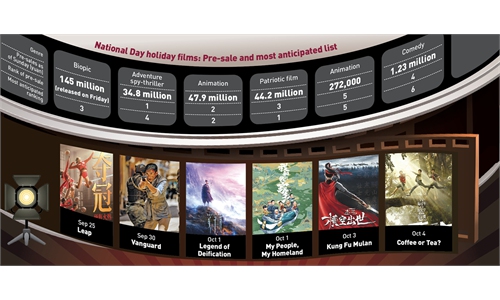 The National Day holiday is a major box-office earner for the Chinese mainland. In 2019, the holiday brought in 4.38 billion yuan ($642 million) in a single week. While 2020's National Day box office is sure to be impacted by COVID-19, a number of big releases such as Leap, Legend of Deification and Vanguard are sure to help cinemas see an impressive haul over the 8-day holiday.