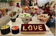Photo taken on Feb 13 shows flowers for sale in Changchun of Jilin province. With couples set to enjoy Valentine's Day, flower traders in China are also welcoming the boost that the annual celebration of romance is providing for their sales.