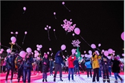 People launch balloons as they celebrate Valentine's day in Moscow, Russia, on Feb. 14, 2017.