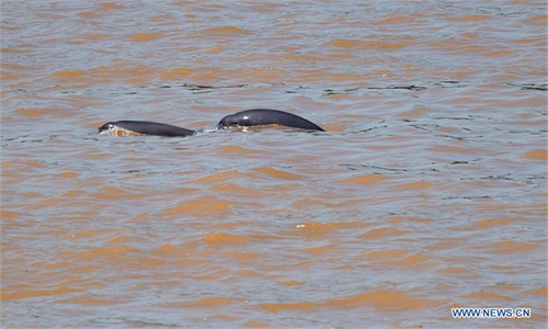 In the river not far from the upstream of the Yangtze River Bridge in Nanjing, East China's Jiangsu Province, people have been transfixed by the rare scene of finless porpoises ...