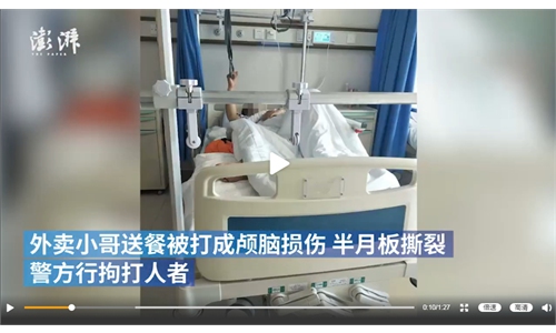 A deliveryman from Chengdu, Southwest China's Sichuan Province, was struck on the head by a customer he was delivering food to, because "he called me on the phone when I ...