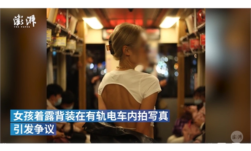 A woman in Changchun, Northeast China's Jilin Province, provoked anger from passengers on a local tram after taking photos of herself wearing a backless outfit, triggering discussions over women's freedom ...