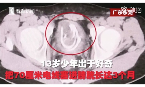 A 13-year-old boy from Dongguan, South China's Guangdong Province, had to undergo surgery to remove a 70-centimeter-long electric wire he inserted into his urethra after becoming curious about where urine ...