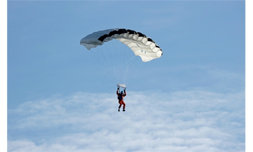 A parachutist completed the world's first jump from a solar-powered aircraft Tuesday after the plane soared to a height of 1,520 meters over western Switzerland, Swiss organizers said.
