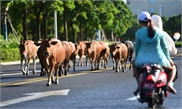 A herd of cattle stroll down a street in Qionghai, South China's Hainan Province on Sunday, eating grass by the roadside and attracting the attention of passersby. Photo: VCG