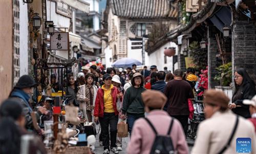 Tourists visit Xizhou old town in Dali City, China's Yunnan