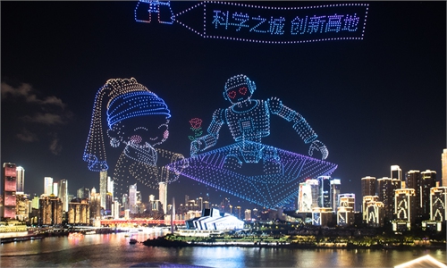 Drone light show celebrating spirit of sports staged in Hong Kong