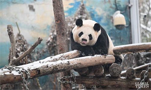 On December 12, Beijing welcomed its first snowfall of winter 2025. At the Beijing Zoo, giant panda Dian Dian was seen enjoying a meal and playing in the snow, delighting ...