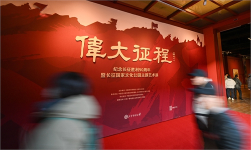 An art exhibition commemorating the 90th anniversary of the victory of the Red Army Long March, highlighting the Long March National Cultural Park, opened at the Beijing Working People's Cultural ...