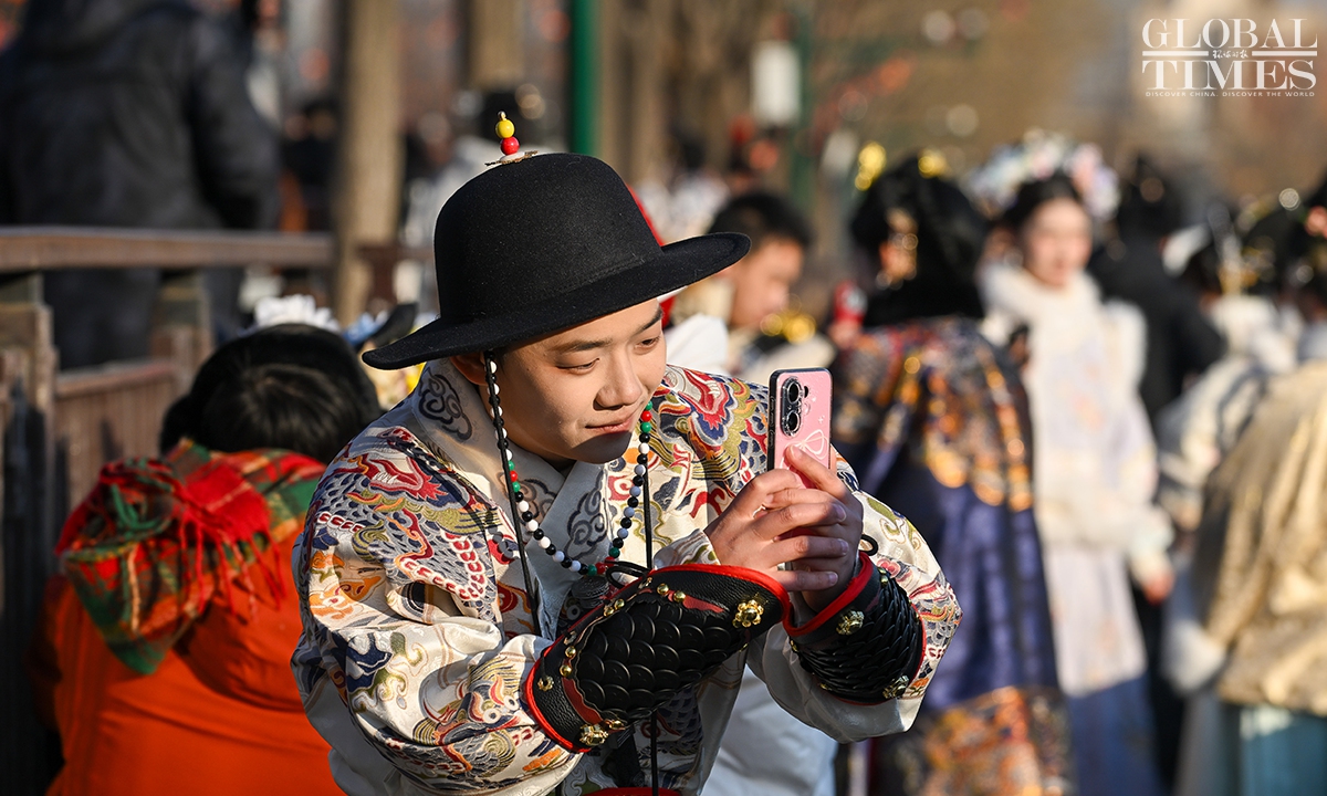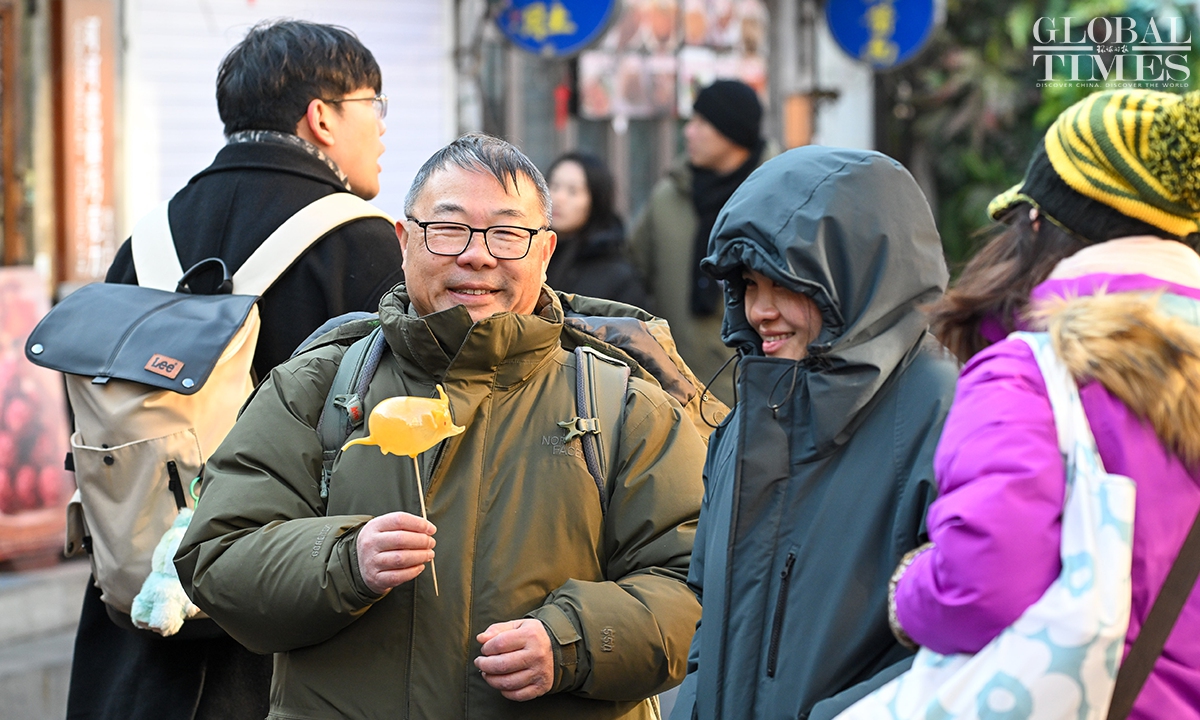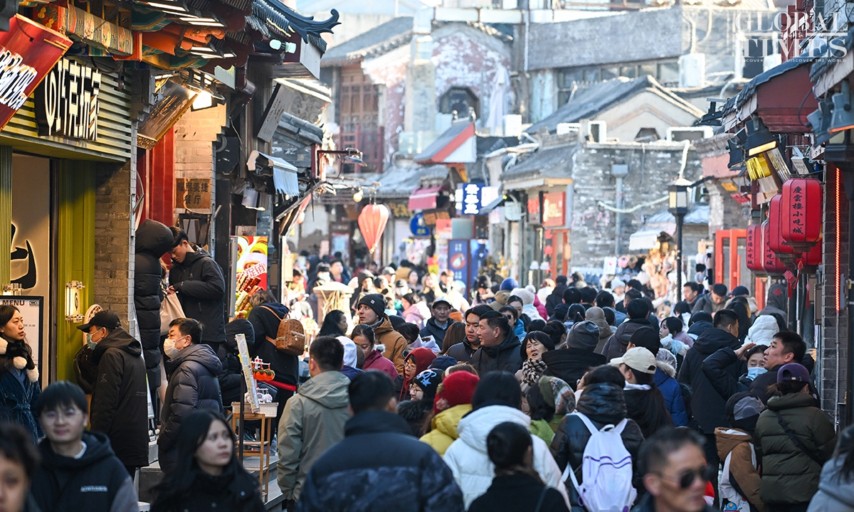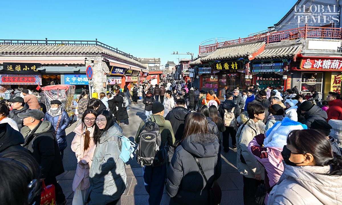 On January 1, 2025, #Beijing's Qianmen pedestrian street was bustling with visitors. Long lines formed in front of various traditional shops, showcasing the vibrant holiday spirit! Photos: Chen Tao/GT