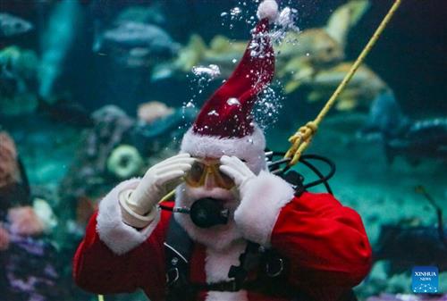 Diver dressed as Santa Claus performs at Vancouver Aquarium in Canada