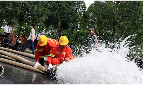 A team of over 300 Shanghai task force members from local water-control bureau carried out flood-fighting drills for the 3rd China International Import Expo at the National Exhibition and Convention ...