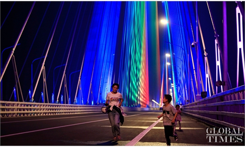 After 6 years of construction, the cable-stayed bridge in East China's Jiangsu Province, which runs between Nantong to Zhangjiagang, was officially named the Suhutong Yangtze River Bridge on Monday.