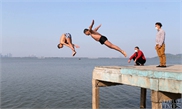 Residents enjoy a long-awaited swim at the Oriental Sports Center, Shanghai's landmark swimming venue, on Monday. The venue has a limit on the number of visits and is only open ...