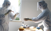 Medics conduct nucleic acid tests for residents at a community health service center in Jiading District, Shanghai, on Tuesday. The test results will be available 24 hours after the samples ...