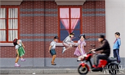 Artists are working on murals on the traditional shikumen buildings along Shanhaiguan road in Shanghai. The nostalgic murals depict different life scenes of the city in the old days.