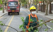 In spring, the green belt and landscape maintenance workers in Shanghai trim redundant leaves and branches of platanus to maintain the beauty and cleanliness of Shanghai's streets.