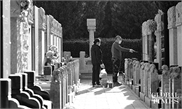 Staff members offer flowers to the deceased in Qiongshan Cemetery, Nanchang City, southeast China's Jiangxi Province, April 1, 2020. On this year's Tomb-sweeping Day, also known as Qingming Festival that ...