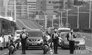 At 10 am, April 4, Wuhan Qiaokou police station traffic brigade's officers mourn COVID-19 victims on Yangtze River Bridge (Photos: Cui Meng/GT)