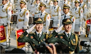 Over 300 foreign military officers from 84 countries and Chinese military officers celebrate the 70th anniversary of the People's Republic of China, wearing "I love you, China!" t-shirts at the ...