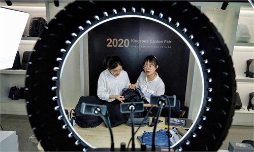 Livestreaming site of Guangzhou Kingsons Bags Technology Co., an online Canton Fair exhibitor that produces packsacks.
