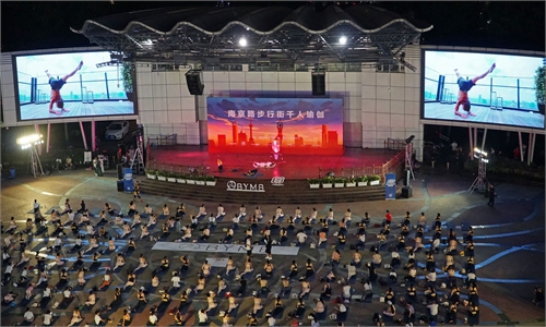 Around a thousand people took part in a yoga event on Nanjing Road, the most famous pedestrian street in Shanghai, Sat evening. Participants had to go through temperature checks and ...
