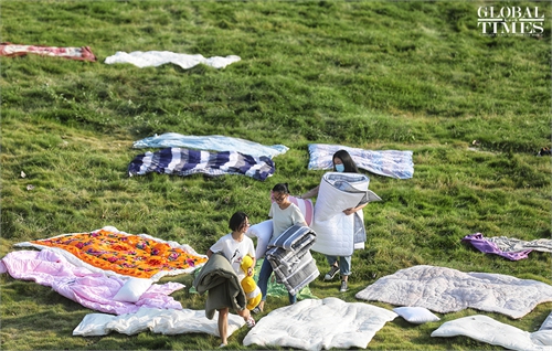 Eight months after their school closed due to the COVID-19 pandemic, students at Wuhan's Huazhong University of Science and Technology treated their bedding to some fresh air. Photos: Cui Meng/GT