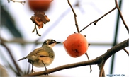 Birds peck at ripe persimmon in Huai'an, E China's Jiangsu