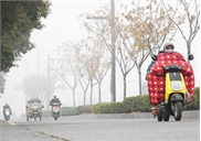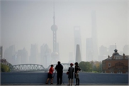 People take photos near the Bund on a foggy Wednesday. Shanghai authorities issued a blue air-pollution alert at 7 pm Tuesday, reminding citizens to reduce their outdoor activities and close ...