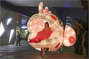 A woman rides a float decorated with lights at an outdoor festival held at The Hub Mall of Hongqiao in Shanghai on Tuesday. With flowers, fire and fairyland as its ...