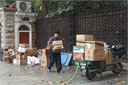 After the Double 11 shopping festival, local deliverymen are burdened with huge piles of packages for customers.