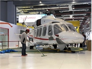Helicopter AW189 stands by at an exhibition booth on Thursday, waiting for visitors during the forthcoming first China International Import Expo (CIIE).