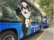Buses decorated with China International Import Expo (CIIE) mascot Jinbao stop along a street in Shanghai on Sunday. The expo will officially start on Monday and run until November 10.