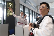 Airport employees direct passengers at the new Terminal One of Shanghai Hongqiao International Airport. The terminal reopened to the public officially on Monday after a three-year renovation.