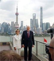 King Harald V and Queen Sonja of Norway pose for photos at the Bund on Thursday morning. The royal couple visited Shanghai and witnessed the signing of framework contracts for ...