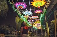 A woman takes photos of lanterns designed by intangible cultural heritage inheritors at Shanghai's Jinjiang Park on Sunday evening, the last day of the National Day holiday.