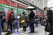 People wait in line to buy train tickets at Shanghai Railway Station on Thursday. With Spring Festival holiday around the corner, China is expected to see 413.3 million railway trips ...