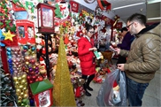 A foreigner pays for Christmas products on Monday at Yiwu International Trade City in Yiwu, East China's Zhejiang Province. The market welcomes the peak season every December. Orders come from ...