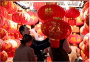 People look at lanterns at a market in Yiwu, East China's Zhejiang Province, on Wednesday. China has a long tradition of raising red lanterns to celebrate Chinese lunar new year. ...