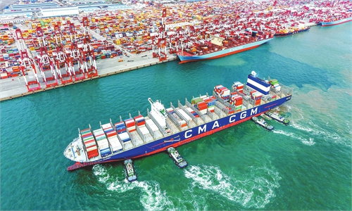 Vessels are under construction at a shipyard in Yangzhou, East China's Jiangsu Province, on October 21, 2025. In the first nine months, China's shipbuilding completions, new orders, and order backlogs accounted for 53.8 percent, 67.3 percent, and 65.2 percent of the global total in terms of deadweight tonnage, remaining the world leader. Photo: VCG