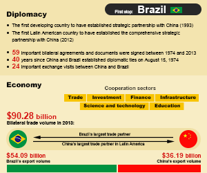 | July 15-16 Attend the sixth BRICS Summit + China-Latin America and the Caribbean Summit + Visit Brazil | ||