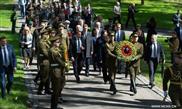 People attend the commemoration marking the 70th anniversary of World War II victory in Europe in Vilnius, Lithuania, on May 8, 2015.