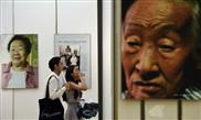 Visitors view portraits and introduction of comfort women survivors in an exhibition of photos and real objects at the Hangzhou Library in Hangzhou.