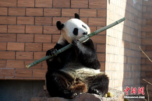 Panda named Xinyue and Zhuyun greet their fourth New Year in Taihu National Wetland Park in east China's Jiangsu Province, January 1, 2015.