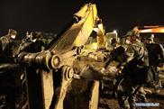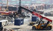 Cranes move away destroyed containers at core area of Tianjin blasts