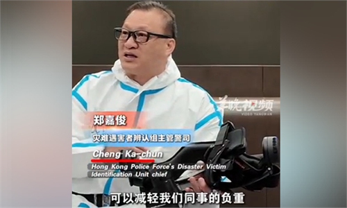 The post-fire search and recovery efforts at Hong Kong's Tai Po Wang Fuk Court continued to make progress, with the work of the Hong Kong Police Force's Disaster Victim Identification Unit (DVIU) drawing widespread public attention. On Friday, DVIU Chief Cheng Ka-chun demonstrated during an interview with South, a news platform operated by Guangdong-based Nanfang Daily, two sets of equipment provided by the Chinese mainland. Among them, the exoskeleton suits proved especially valuable for officers responsible for transporting bodies.