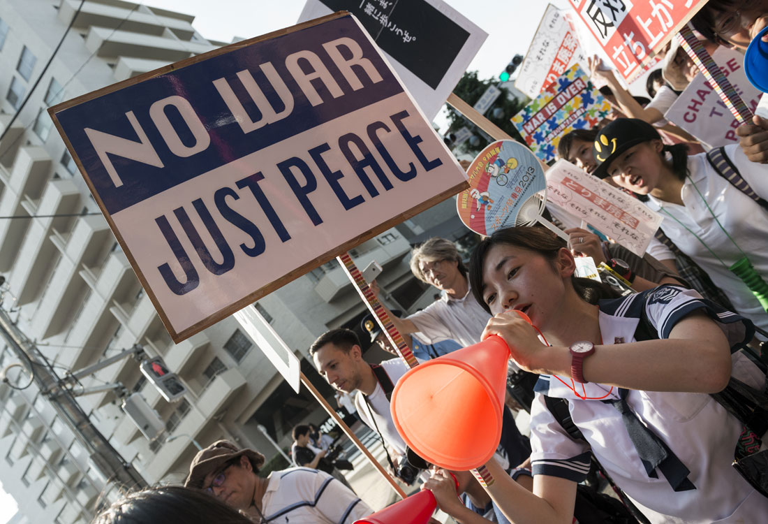 Students protest in the streets of Shibuya, Tokyo on Sunday, against what they call the "war bill," - Japan's new defense bill, and the revision of article 9 of the constitution, which together will allow overseas operations by the Self-Defense Forces, a major change to Japan's post-war defense-oriented security policy. Photo: CFP