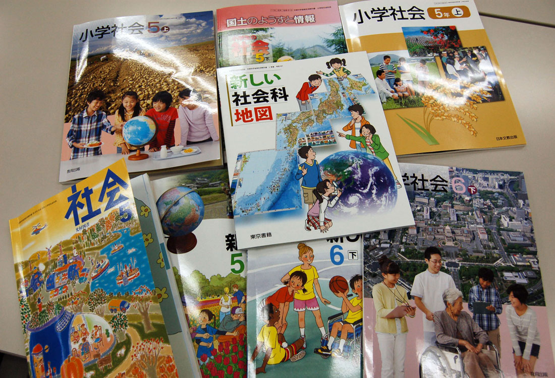 Textbooks for primary schools in Japan. Education authorities in Yokohama decided to promote history textbooks published by a right-wing publisher in public junior high schools in 2011. Photo: IC
